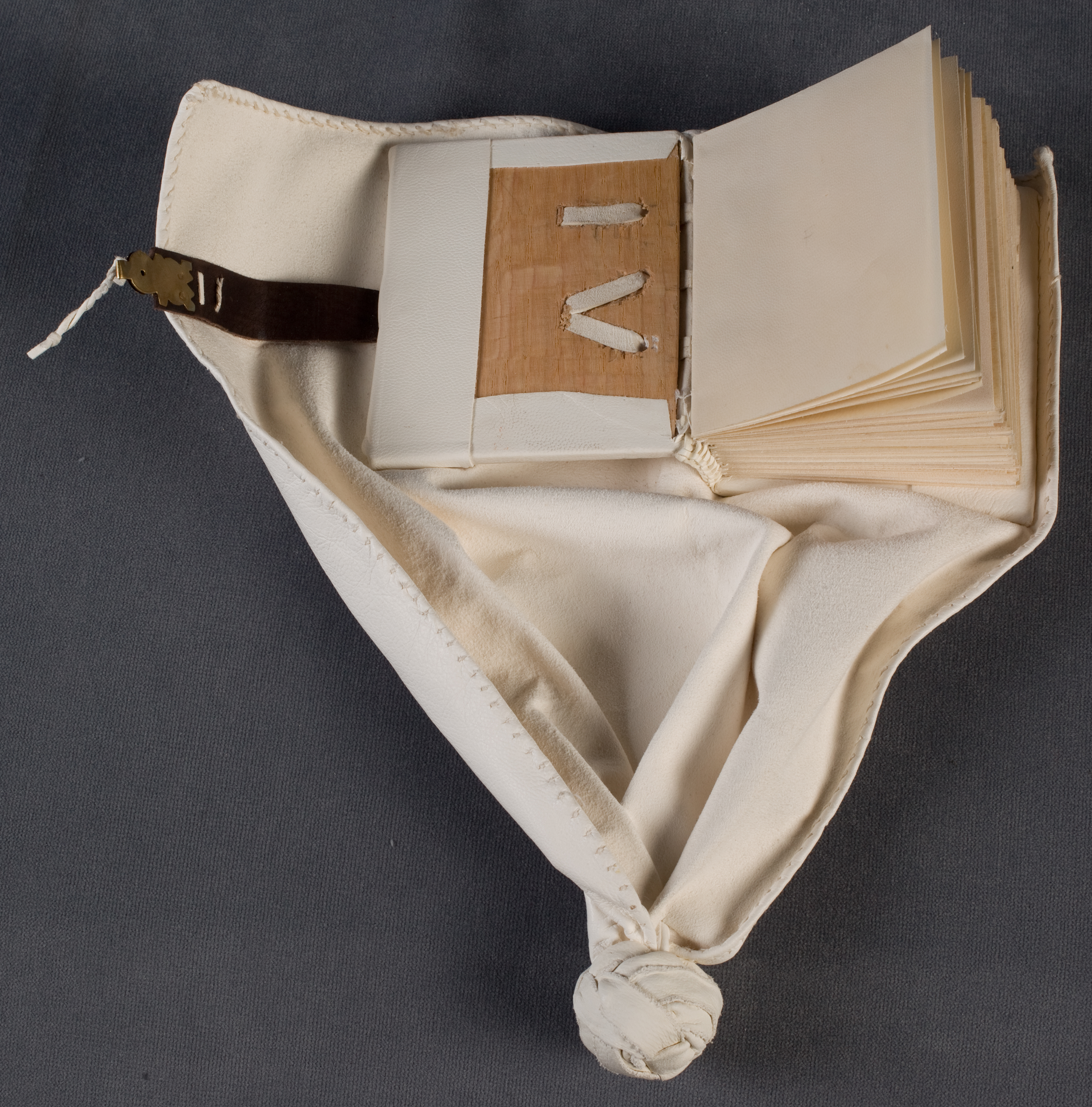 The kit also includes leather and parchment samples and a PDF booklet of terms, materials, methods, and images of the original bindings on which these models were based.